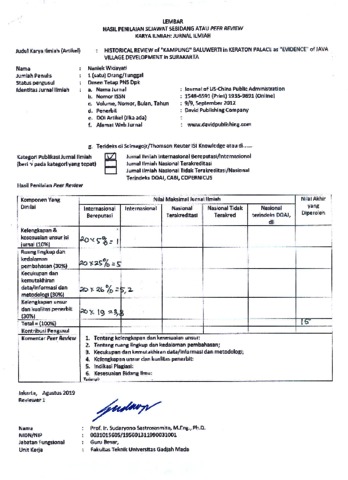 Priyomarsono, Naniek Widayati Peer Review "Historical Review of 'Kampung' Baluwerti in Keraton Palace as 'Evidence' of Java Villages Development in Surakarta". Peer Review.