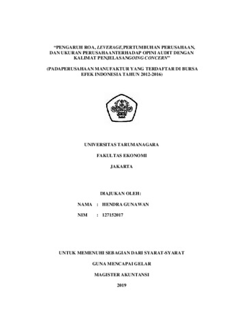 Gunawan, Hendra (2019) Pengaruh roa, leverage, pertumbuhan perusahaan, dan ukuran perusahaan terhadap opini audit dengan kalimat penjelasan going concern. (Pada perusahaan manufaktur yang terdaftar di BEI tahun 2012-2016) /Hendra Gunawan. Masters thesis, Universitas Tarumanagara.