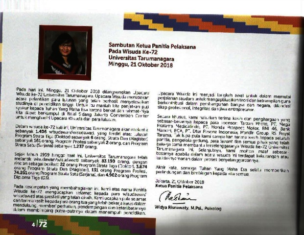Wisuda, Untar (2018) Sambutan Wisuda Untar ke 72. Universitas Tarumanagara.