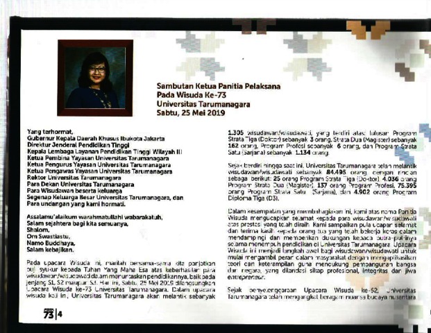 Wisuda, Untar (2019) Sambutan Wisuda Untar ke 73. Universitas Tarumanagara.