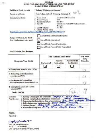 I Cenik Ardana, reviewer and Lerbin R. Aritonang, review and Ardiansyah, Ardiansyah (2015) Reviewer 02, I Cenik Ardana, Lerbin R. Aritonang, Ardiansyah R. ” Students’ Whistleblowing Intention “, 04 (02). pp. 573-584. ISSN 2156-6992