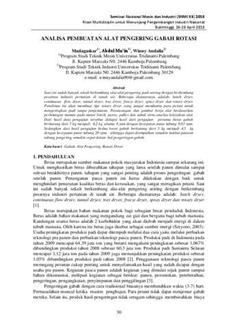 Madagaskar, Madagaskar and Mu’in, Abdul and Andalia, Winny (2018) Analisa Pembuatan Alat Pengering Gabah Rotasi. In: Prosiding Seminar Nasional Mesin dan Industri (SNMI ) XII 2018. Universitas Tarumanagara, pp. 30-38. ISBN 978-602-71459-9-3