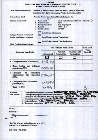 Keni Keni, Review (2019) Review B14 Nicbolas Wilson,Keni, And Pauline Henriette Pattyranie Tan. The Effect Of Website Design Quality And Service Quality On Repurchase Intention In The E-Commerce Industry : A Cross-Continental Analysis, 21 (2). pp. 187-222. ISSN 1141-1128