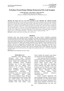average (GPA). Data is processed by using One Way ANOVA. Based on the results of research, it was found that there was no differences in academic achievement in adolescents based on parenting, either by father or