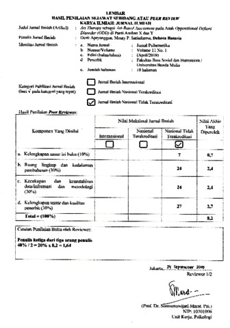 Debora, Basaria Peer Review Art Therapy sebagai Art-Based Assessment pada Anak Oppositional Defiant Disorder (ODD) di Panti Asuhan X dan Y. Jurnal Psibernetika, Jurnal Psikologi Universitas Bunda Mulia.