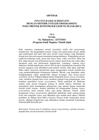 ERVINA, ERVINA (2019) FINANCE-BASED SCHEDULING DENGAN METODE INTEGER PROGRAMMING PADA PROYEK KONSTRUKSI GEDUNG DI JAKARTA. Masters thesis, Universitas Tarumanagara.