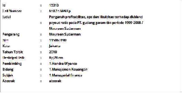 Sudarman, Maureen (2010) Pengaruh profitabilitas, eps dan likuiditas terhadap dividend payout ratio pada PT. gudang garam tbk periode 1999-2008. Skripsi thesis, Universitas Tarumanagara.