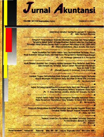 Elizabeth, Elizabeth (2011) Dokumen B.5 Elizabeth Sugiarto Dermawan, Yuniarwati, . Dr. Lerbin R. Aritonang, . Audit Related Variables dan Company Related Variables Yang Berkaitan Audit Delay dan Dampaknya Terhadap Return Saham PeruPerusahaan - Perusahaan Yang Go Public Di BEI, XV (3). pp. 291-308. ISSN 1410 - 3583