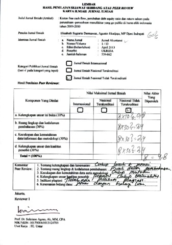 Elizabeth, Elizabeth and agustin ekadjaja, agustin ekadjaja (2013) Reviewer Jurnal B.9 Elizabeth Sugiarto Dermawan, Agustin Ekadjaja, MF Djeni Indrajati. Kaitan free cash flow, perubahan debt equity ratio dan return saham pada perusahaan -perusahaan manufaktur yang go public di bursa efek indonesia tahun 2009-2010, 13 (1). pp. 739-862. ISSN 1411-691X