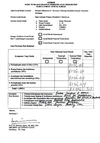 Elizabeth, Elizabeth and MF. Djeni Indrajati, review (2018) Reviewer Jurnal B.18 Djeni Indrajati Widjaja, Elizabeth S. Dermawan,. Persepsi Mahasiswa S1 Akuntansi Terhadap Perubahan Standar Akuntansi Keuangan, 18 (2). pp. 219-234. ISSN 1411-691X