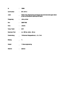 Johan, Johny (2011) Model Value Engineering terintegrasi dan berkesinambungan dalam proyek pembangunan gedung bertingkat. Masters thesis, UNIVERSITAS TARUMANAGARA.