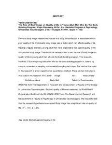 Yenny, Yenny (2020) The Role of Body Image on Quality of life in Young Adult Men Who Do The Body Building Program. Diploma thesis, Universitas Tarumanagara.