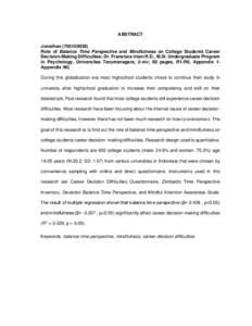 | Uncontrolled Keywords: | balance time perspective, mindfulness, kesulitan keputusan karir |