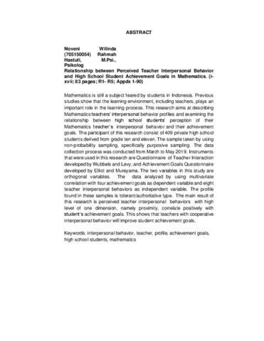Wilinda, Noveni (2020) Hubungan antara Perceived Teacher Interpersonal Behavior dengan Achievement Goals Siswa SMA pada Pelajaran Matematika. Skripsi thesis, Universitas Tarumanagara.