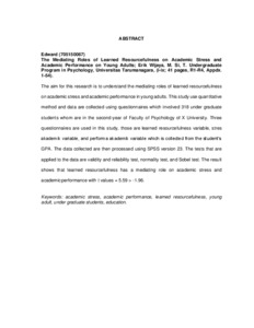Edward, Edward (2020) Peran Stres Akademik terhadap Performa Akademik dengan Learned Resourcefulness sebagai Mediator pada Dewasa Awal. Skripsi thesis, Universitas Tarumanagara.