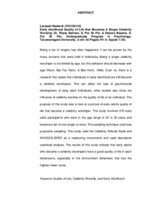 Nawardi, Larasati (2020) Kualitas Hidup Dewasa Awal yang Menjadi Celebrity Worship Penyanyi. Skripsi thesis, Universitas Tarumanagara.