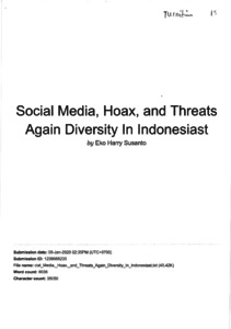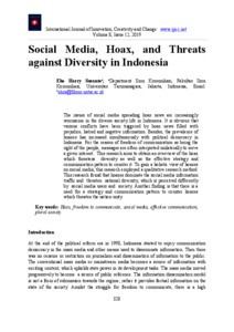 Susanto, Eko Harry (2019) Social Media, Hoax, and Threats Again Diversity In Indonesiast. International Journal of Innovation, Creativity and Change, 12 (8). pp. 328-344. ISSN 2201-1323, 2201-1315