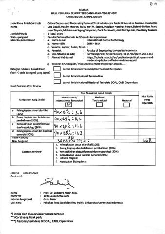 Susanto, Eko Harry Peer Review Critical Success and Moderating Factors Effect In Indonesia Public Universities' Business Incubators. International Journal of Technology.