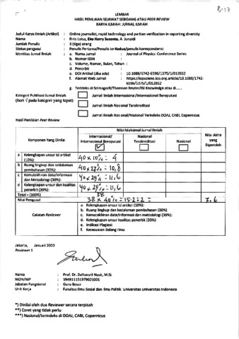 Susanto, Eko Harry Peer Review Online journalist, rapid technology and partian verifications in reporting diversity. Journal of Physics: Conference Series.