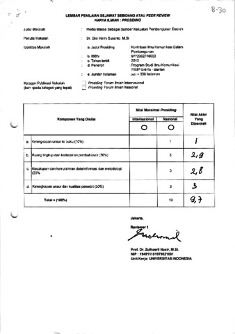 Susanto, Eko Harry Peer Review Media Massa Sebagai Sumber Kekuatan Pembangunan Daerah. Seminar dan Konferensi Nasional Ilmu Komunikasi.