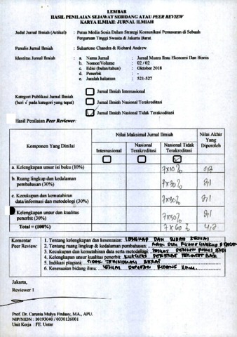 suhartono chandra, suhartono chandra (2018) Reviewer B.1 Suhartono Chandra & Richard Andrew. Peran Media Sosia Dalam Strategi Komunikasi Pemasaran di Sebuah Perguruan Tinggi Swasta di Jakarta Barat, 2 (2). pp. 521-527. ISSN 521-527
