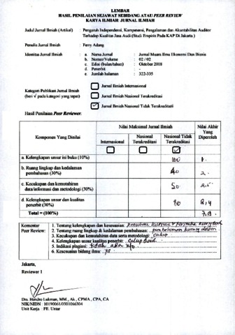 ferryAdang, Reviewer Ferry Adang (2018) Reviewer B.2 Ferry Adang. Pengaruh Independensi, Kompetensi, Pengalaman dan Akuntabilitas Auditor Terhadap Kualitas Jasa Audi (Studi Empiris Pada KAP Di Jakarta ), 2 (2). pp. 322-335. ISSN 2579-6224 (Versi Cetak), 2579-6232 (Versi Elektronik)