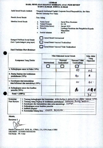 ferry Adang, Reviewer Reviewer B.3 Ferry Adang. Pengaruh Intellectual Capital, Corporate Social Responsibility, dan Sales Growth Terhadap Firm Value, 6 (1). pp. 48-75. ISSN 2338-1132
