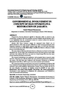 Priyomarsono, Naniek Widayati (2018) GOVERNMENTAL INVOLVEMENT INCONCEPT OF OLD CITY/KOTATUA RESTORATION OF JAKARTA. International Journal of Civil Engineering and Technology (IJCIET).