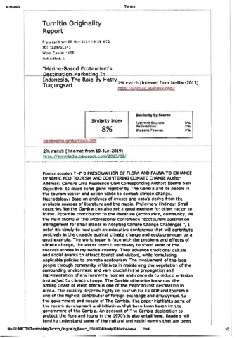 Hetty Karunia Tunjungsari Turnitin, Hetty Karunia Tunjungsari (2011) Turnitin Hetty Karunia Tunjungsari " Marine-Based Ecotourism's Destination Marketing In Indonesia, The Role Of Promotional Activities In Tourist's Choise Of Destination". Marine-Based Ecotourism's Destination Marketing In Indonesia, The Role Of Promotional Activities In Tourist's Choise Of Destination.
