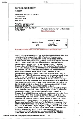 Hetty Karunia Tunjungsari Turnitin, Hetty Karunia Tunjungsari (2012) Turnitin Hetty Karunia Tunjungsari " Profiling Indonesian Chinese Belief In Superstitions ". " Profiling Indonesian Chinese Belief In Superstitions ".