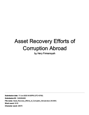 Hery Firmansyah, Hery Firmansyah (2020) Turnitin Asset Recovery Efforts of Corruption Abroad. -.