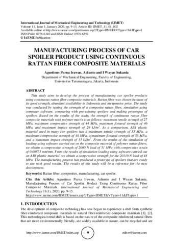 Purna Irawan, Agustinus and Adianto, adianto and Sukania, I Wayan (2020) Manufacturing Process Of Car Spoiler Product Using Continuous Rattan Fiber Composite Material. International Journal of Mechanical Engineering & Technology (IJMET), 11 (1). pp. 9-15. ISSN 0976-6359