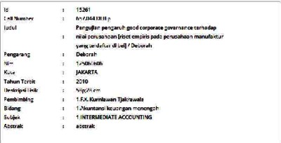 Deborah, Deborah (2010) Pengujian pengaruh good corporate governance terhadap nilai perusahaan [riset empiris pada perusahaan manufaktur yang terdaftar di bei]. Skripsi thesis, Universitas Tarumanagara.