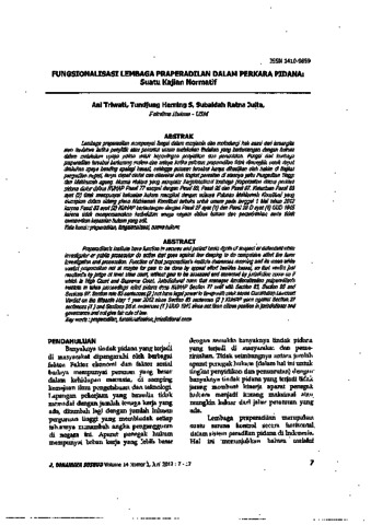 Herning Sitabuana, Tundjung (2012) Fungsionalisasi Lembaga Praperadilan dalam perkara Pidana: Suatu Kajian Normatif. Dinamika Sosial Budaya, 14. pp. 7-17. ISSN 1410-9859