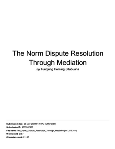 Herning Sitabuana, Tundjung (2019) Turnitin The Norm Dispute Revolusion Through Mediation. Universitas Tarumanagara.