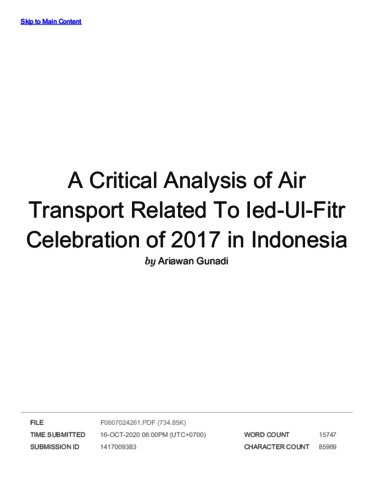 Gunadi, Ariawan (2017) Turnitin A Critical Analysis of Air Transport Related To Ied-Ul-Fitr Celebration of 2017 in Indonesia. IJBMI.
