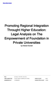 Promoting Regional Integration Throught Higher Education_ Legal Analysis on The Empowerment of Foundation in Private Universities.pdf Download (3MB) | Preview |