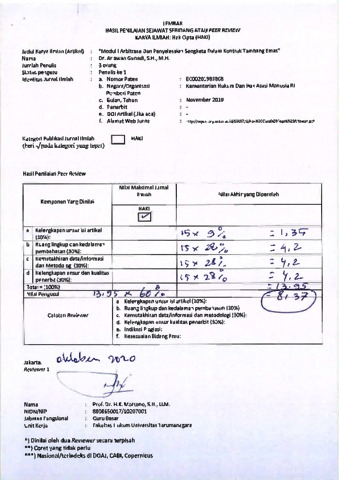 Gunadi, Ariawan (2019) Peer Review Modul I Arbitrase Dan Penyelesaian Sengketa Dalam Kontrak Tambang Emas. Kementerian Hukum Dan Hak Asasi Manusia RI.