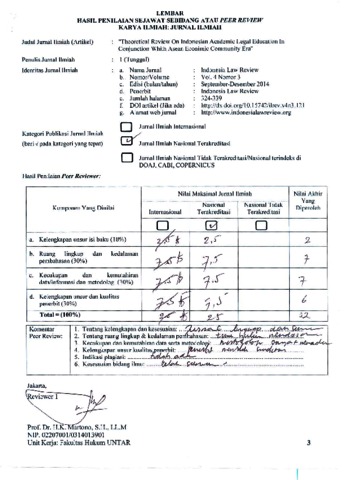 Gunadi, Ariawan (2014) Peer Review Theoretical Review On Indonesian Academic Legal Education In Conjunction With Asean Economic Community Era. Fakultas Hukum Universitas Indonesia.