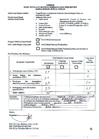 Gunadi, Ariawan (2017) Peer Review Legal Review on Indonesia "Electronic Data Interchange Policy on International Trade. I J B M I.