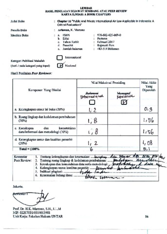 Gunadi, Ariawan (2016) Peer Review Chapter 16 Public And Private International Air Law Applicable In Indonesia: A Critical Evaluation1. Rajawali Pers.