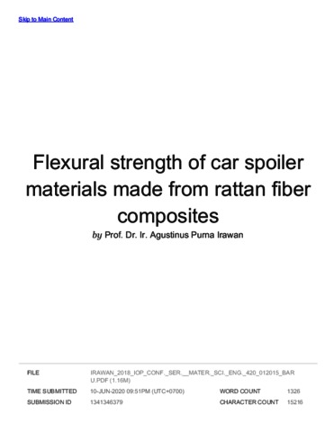 Purna Irawan, Agustinus and Adianto, adianto and Sukania, I Wayan (2018) Turnitin : Flexural strength of car spoiler materials made from rattan fiber composites. 2nd Nommensen International Conference on Technology and Engineering 2018. ISSN 1757899X