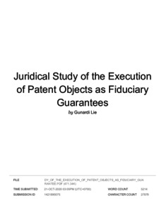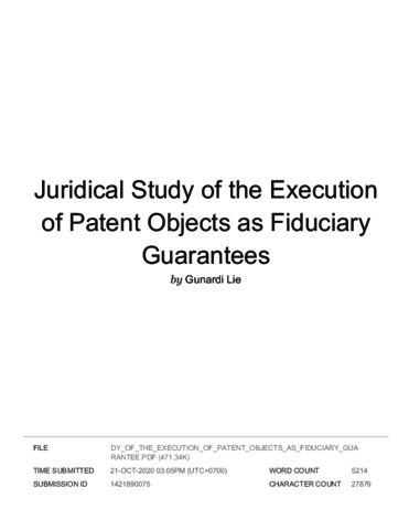 Gunardi, Gunardi (2019) Turnitin Juridical Study of the Execution of Patent Objects as Fiduciary Guarantee. Atlantis Press.