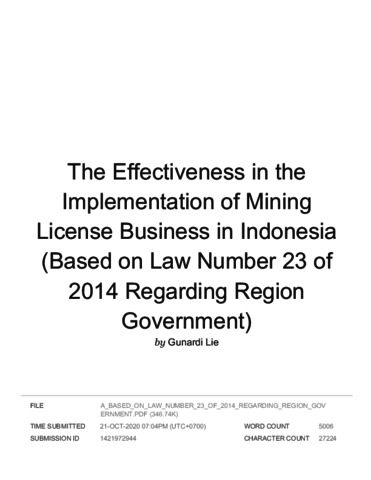 The Effectiveness in the Implementation of Mining License Business in Indonesia (Based on Law Number 23 of 2014 Regarding Region Government) (1).pdf Download (2MB) | Preview |