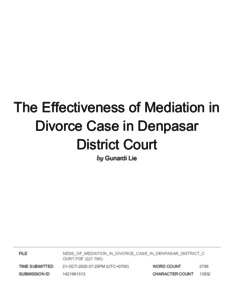 The Effectiveness of Mediation in Divorce Case in Denpasar District Court.pdf Download (1MB) | Preview |