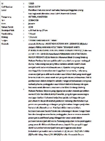 Octora, Anastasia (2010) Peralihan hak atas tanah terhadap harta peninggalan orang tua bagi anak dibawha umur. Skripsi thesis, Universitas Tarumanagara.