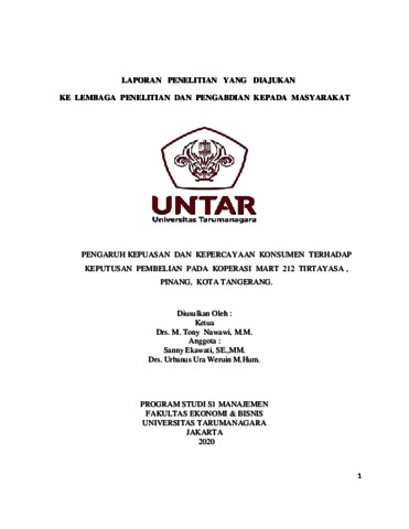 Penelitian ini berjudul : Pengaruh kepuasan konsumen dan kepercayaan konsumen terhadap Keputusan Pembelian pada Koperasi Mart 212 Tirtayasa, Pinang, Kota