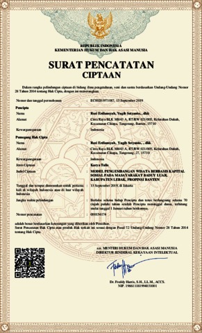 Erdiyansyah, Rezi MODEL PENGEMBANGAN WISATA BERBASIS KAPITAL SOSIAL PADA MASAYARAKAT BADUY LUAR, KABUPATEN LEBAK, PROPINSI BANTEN. MODEL PENGEMBANGAN WISATA BERBASIS KAPITAL SOSIAL PADA MASAYARAKAT BADUY LUAR, KABUPATEN LEBAK, PROPINSI BANTEN.