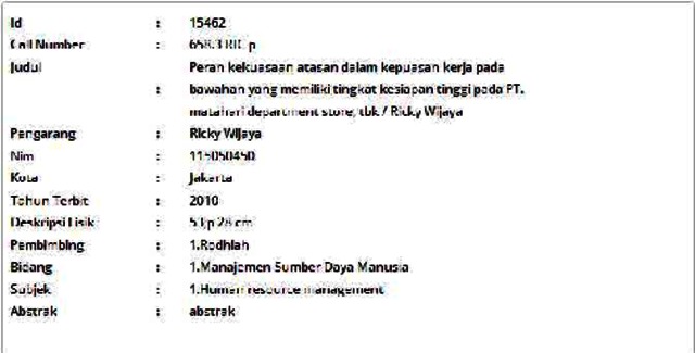 Wijaya, Ricky (2010) Peran kekuasaan atasan dalam kepuasan kerja pada bawahan yang memiliki tingkat kesiapan tinggi pada PT. matahari department store, tbk. Skripsi thesis, Universitas Tarumanagara.