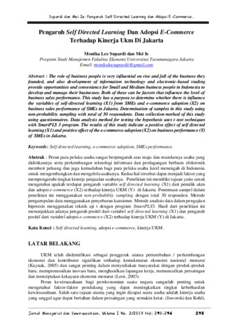Supardi, Monika Lee and Ie, Mei Pengaruh Self Directed Learning Dan Adopsi E-Commerce Terhadap Kinerja Ukm Di Jakarta. Pengaruh Self Directed Learning Dan Adopsi E-Commerce Terhadap Kinerja Ukm Di Jakarta.